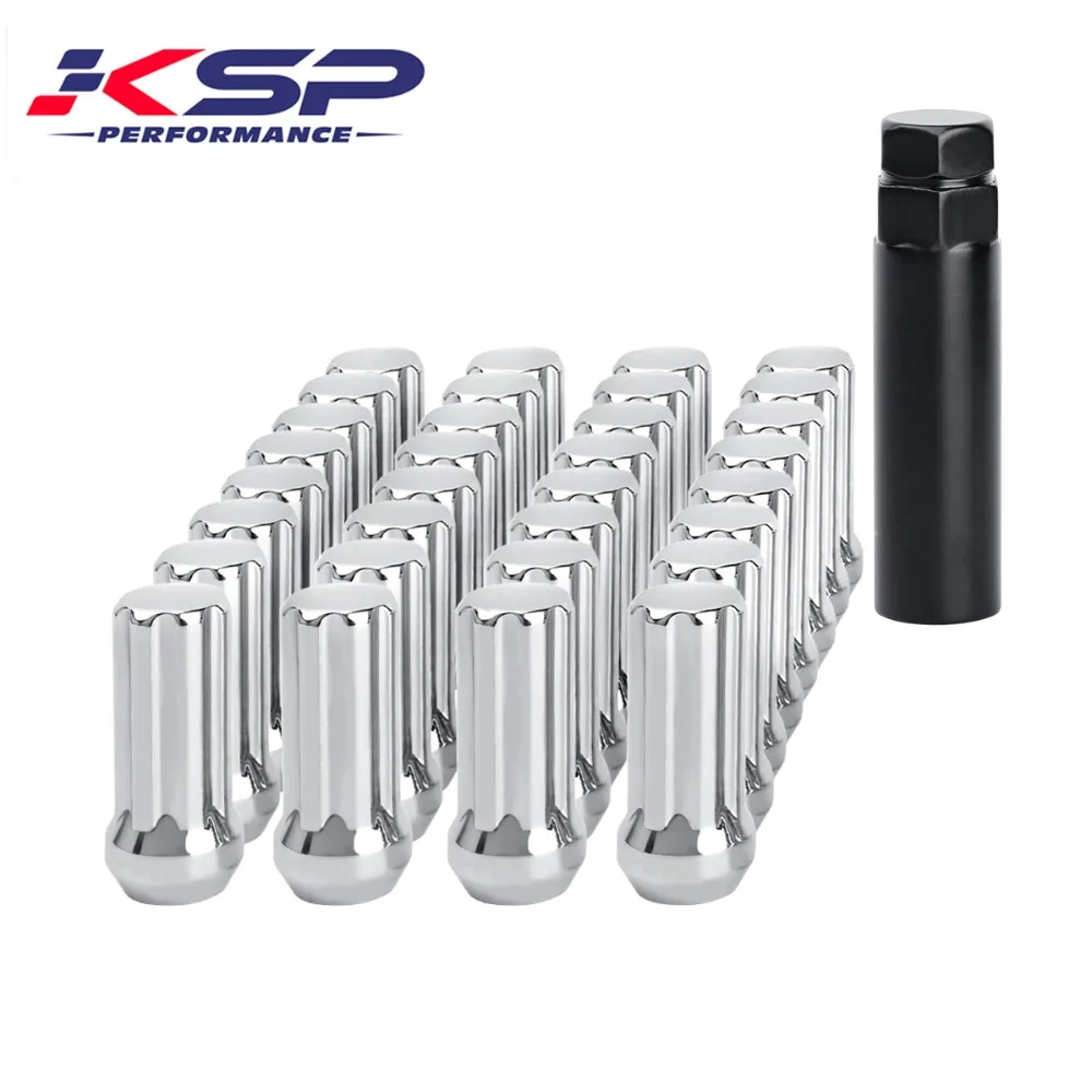 .Pictures for KSP 32pc Premium Chrome Spline Lug Nuts 916-18, 2in Acorn XL Long Tall with Socket Key for RAM 2500 3500 FORD F250 F350 1987-19